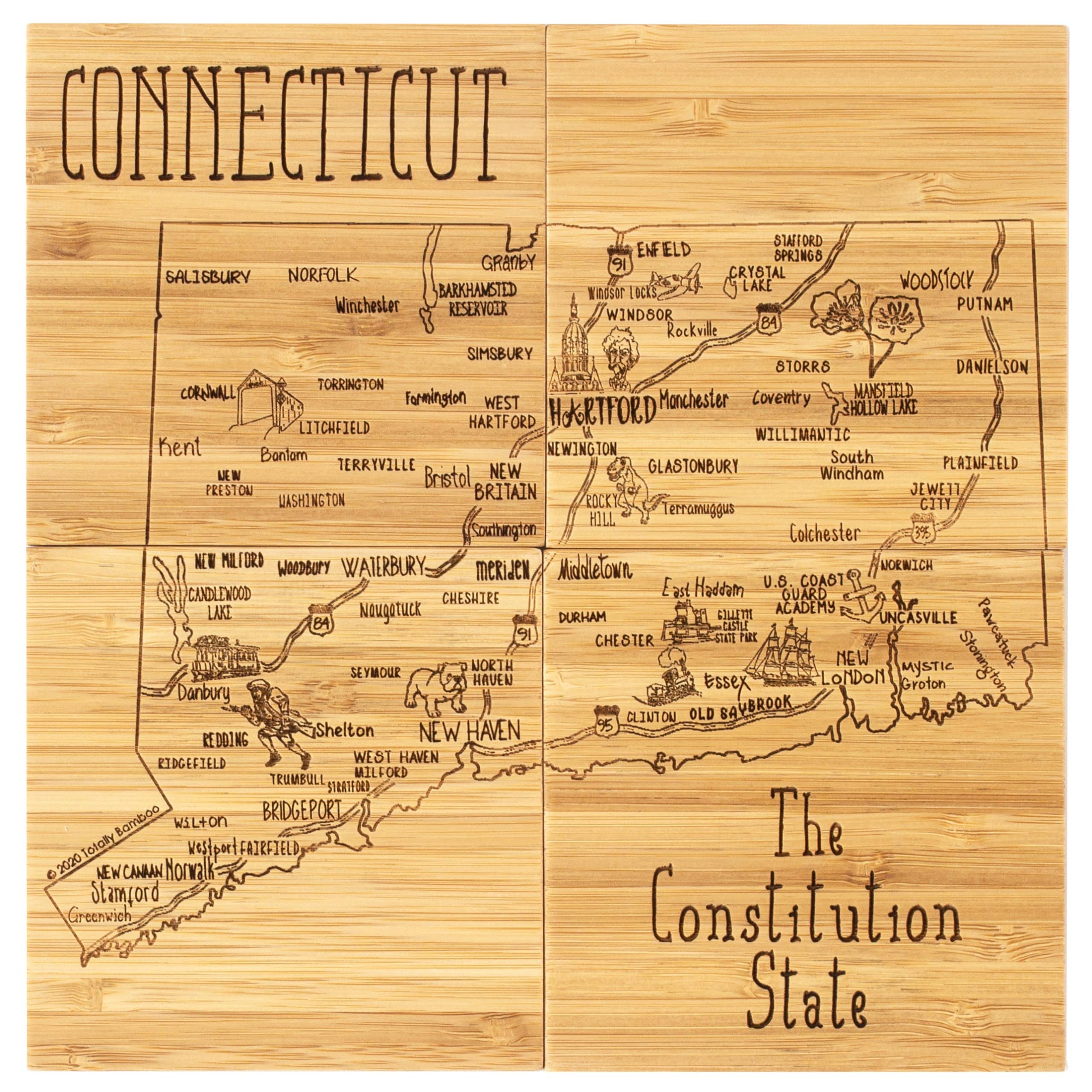 This State Puzzle Coaster Set with Case offers a natural solution for protecting tabletop. These sturdy coasters are crafted from organically-grown Moso® bamboo, an environmentally-friendly material solution that quickly re-grows once harvested. Bamboo is both lightweight & durable a perfect choice for coasters! The coaster set includes a handsome case to store coasters neatly when not in use. The coasters are easy to care for as well: simply wipe them with a damp cloth to clean. Complies with Prop 65. 4″ W x 4″ H