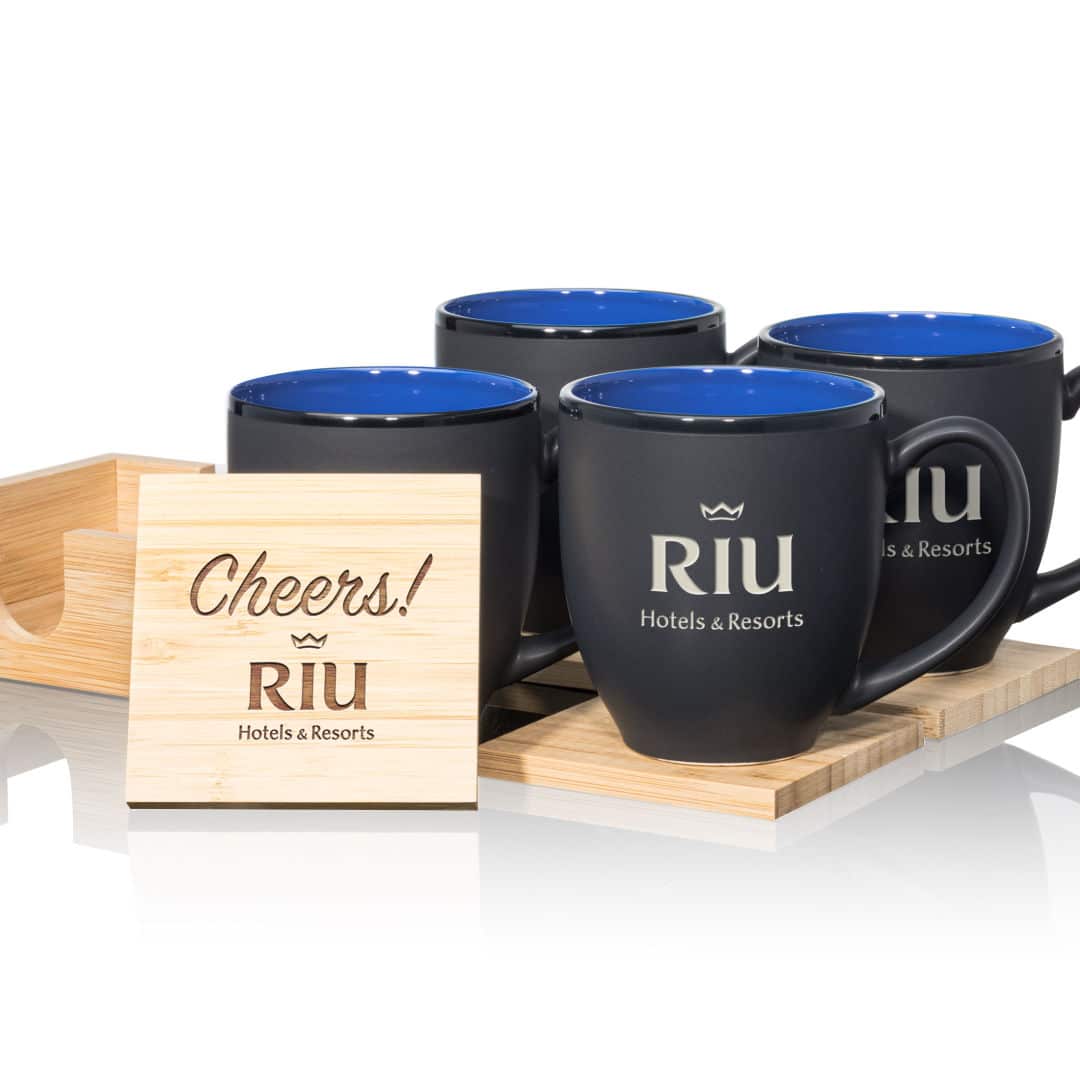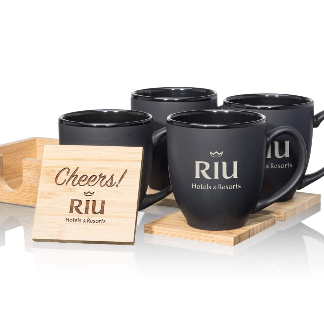Elevate your beverage experience with this elegant gift set featuring four beautifully crafted bamboo coasters nestled in a matching bamboo holder, paired perfectly with a set of four stylish Dereham mugs. Ideal for any occasion, this set brings a touch of natural sophistication to your home or office.