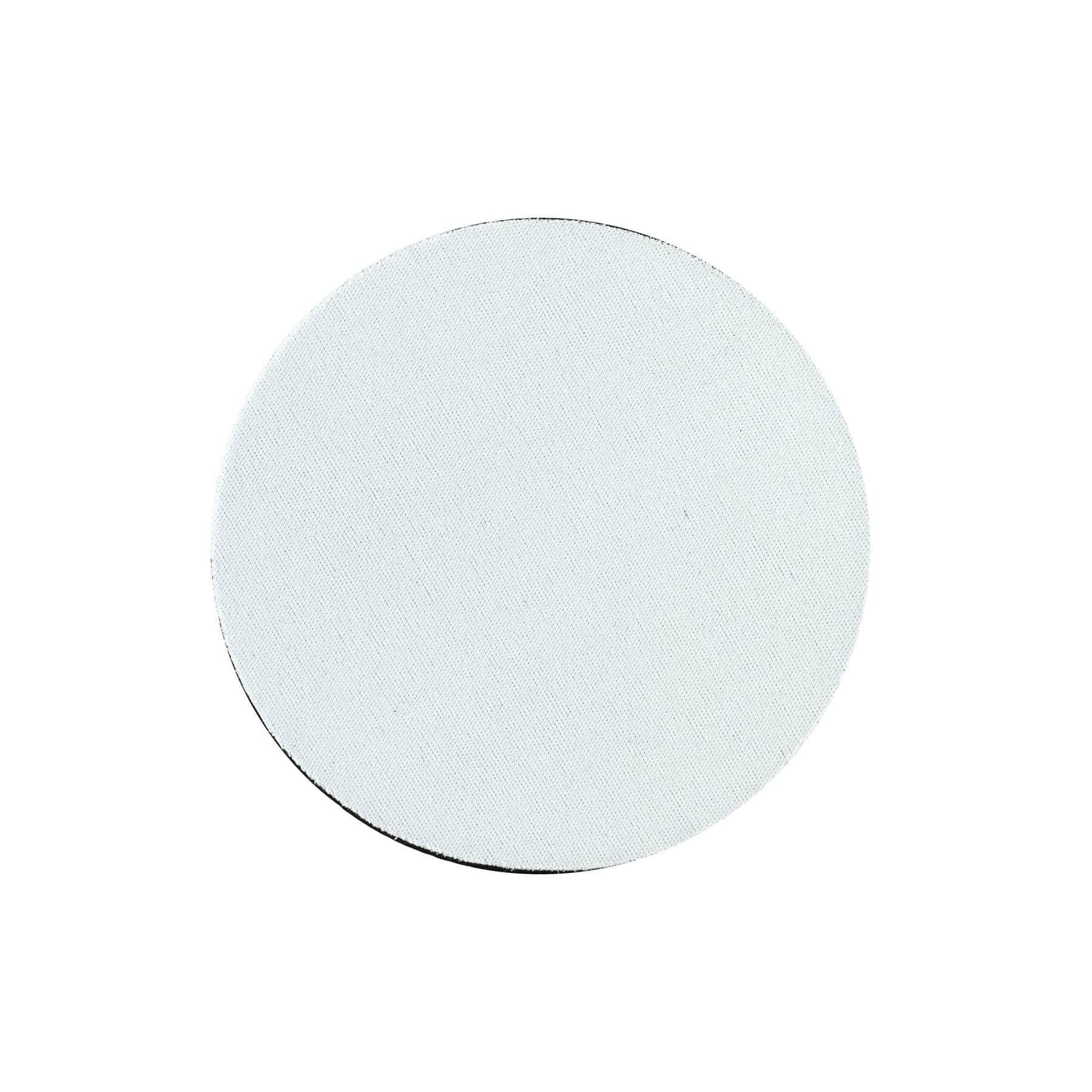 Round neoprene coaster with slip-proof rubber backing. 4″ W