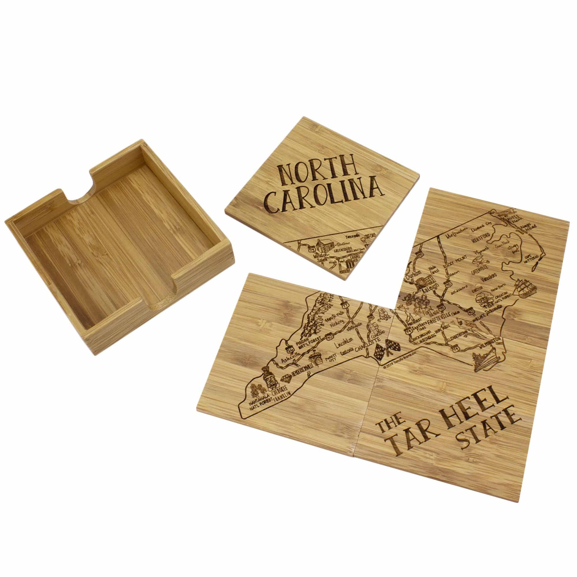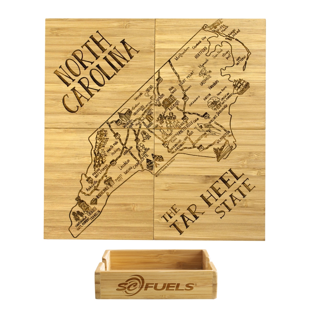 This State Puzzle Coaster Set with Case offers a natural solution for protecting tabletop. These sturdy coasters are crafted from organically-grown Moso® bamboo, an environmentally-friendly material solution that quickly re-grows once harvested. Bamboo is both lightweight & durable a perfect choice for coasters! The coaster set includes a handsome case to store coasters neatly when not in use. The coasters are easy to care for as well: simply wipe them with a damp cloth to clean. Complies with Prop 65. 4″ W x 4″ H