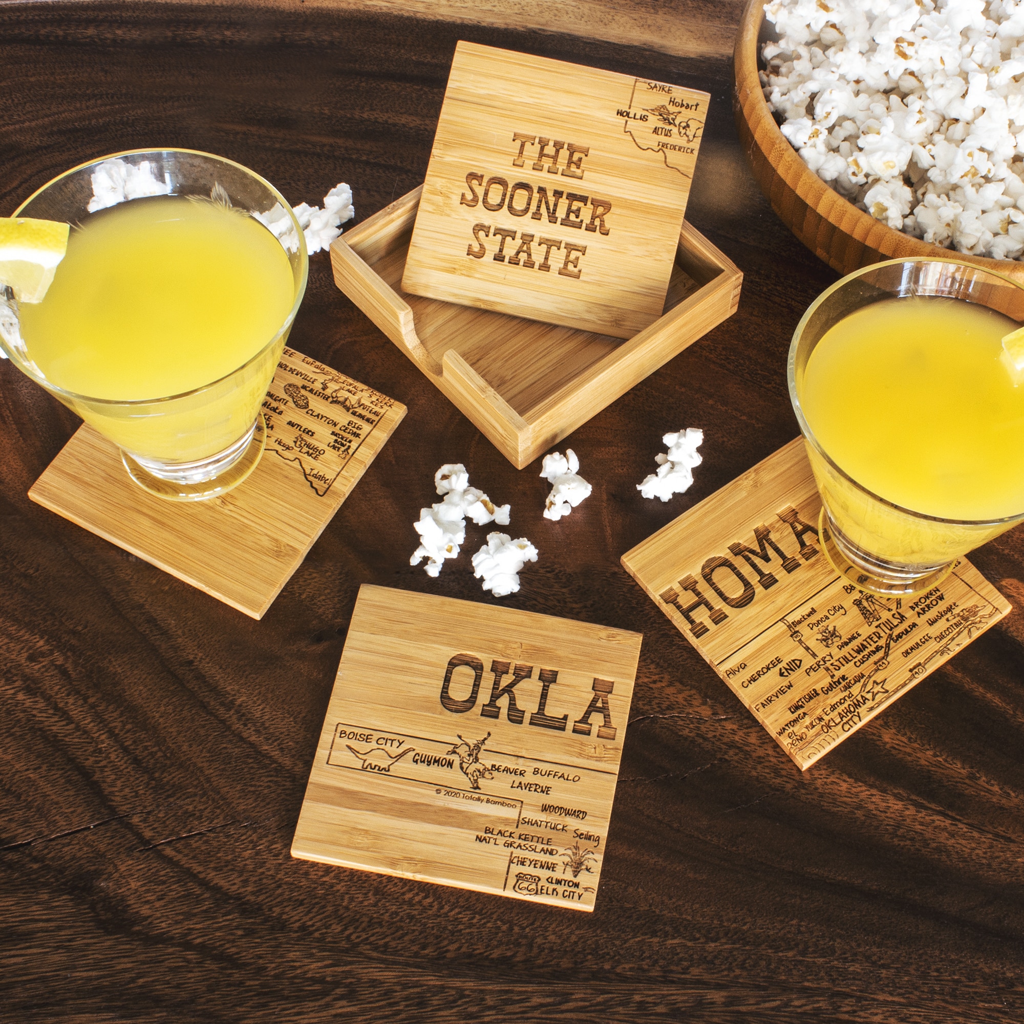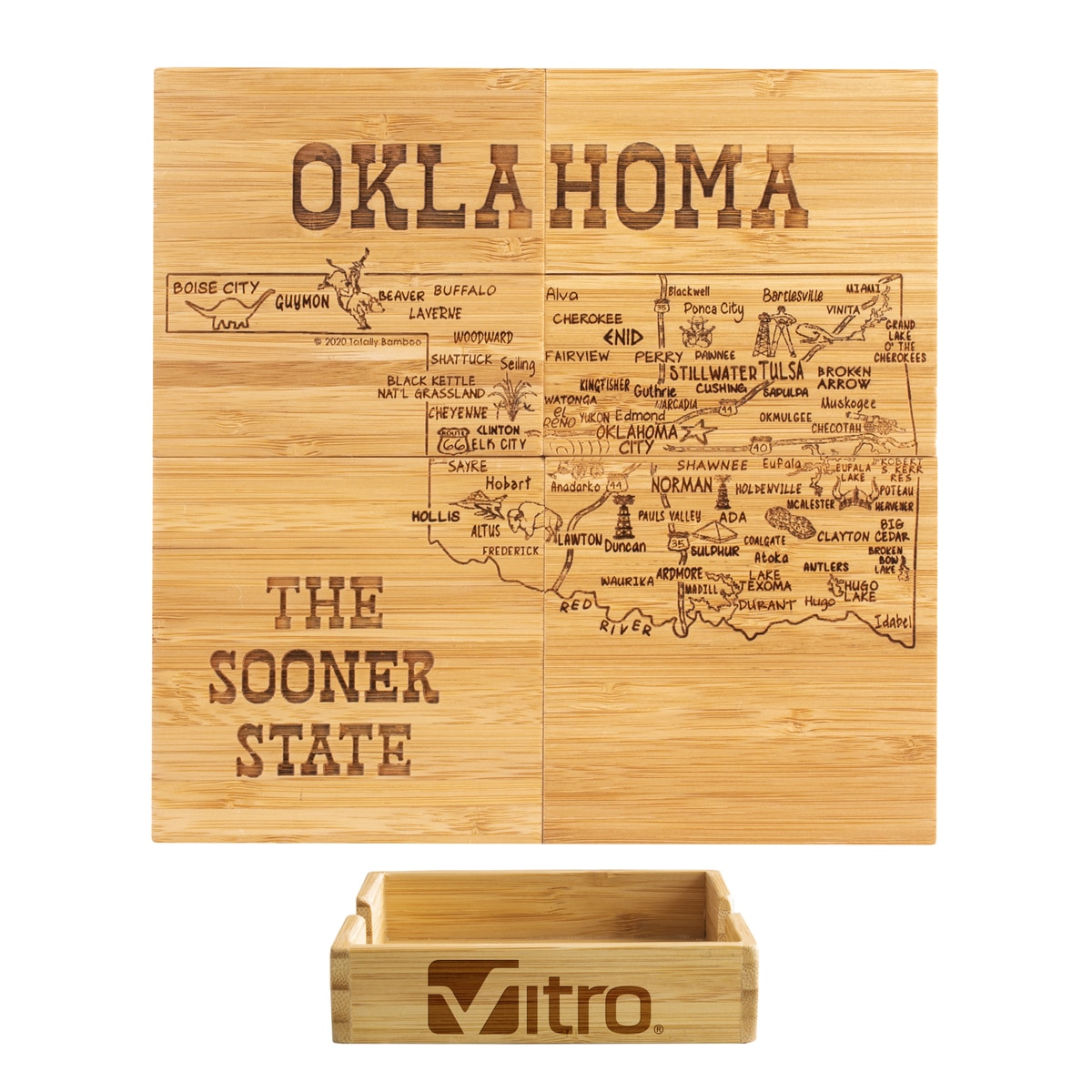 This State Puzzle Coaster Set with Case offers a natural solution for protecting tabletop. These sturdy coasters are crafted from organically-grown Moso® bamboo, an environmentally-friendly material solution that quickly re-grows once harvested. Bamboo is both lightweight & durable a perfect choice for coasters! The coaster set includes a handsome case to store coasters neatly when not in use. The coasters are easy to care for as well: simply wipe them with a damp cloth to clean. Complies with Prop 65. 4″ W x 4″ H